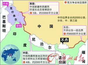 | | 中印边界问题是历史遗留下来的。1914年,英国殖民主义者炮制了非法的“麦克马洪线”,中国历届中央政府都不予承认。1947年印度独立后,不仅继承了英国对中国部分领土的侵占,而且进一步侵占中国大片领土,于1953年扩展到“麦线”。1954年,印按其侵占和无理主张单方面在地图上将中印“未定界”改画为“已定界”。(据中华人民共和国外交部网站,图片来源:CFP) |